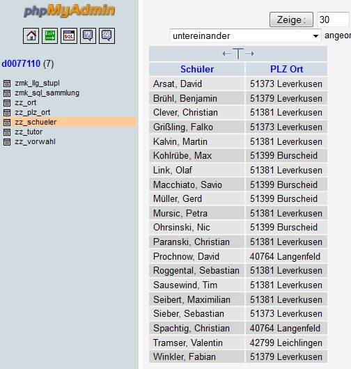 | Aufg S.311 Nr.7 | Tabellenstruktur und Daten zu: Schulbuch Informatik 2, Seite 311, Aufgabe 7 [Tipps dazu] |